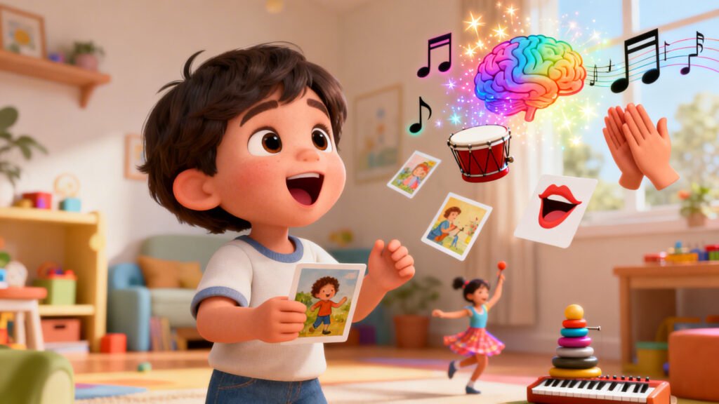 Ao cantar, dançar, bater palmas ou tocar um instrumento simples, a criança aciona, simultaneamente, processos emocionais, cognitivos e motores. Em outras palavras, a música conversa com o cérebro, com o corpo e com o coração ao mesmo tempo.