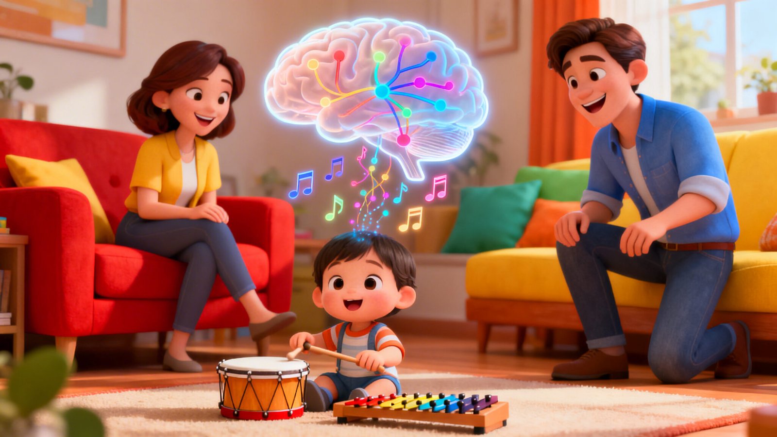 Os primeiros anos de vida (especialmente até os 5 anos) são marcados por intensa formação e reorganização de conexões neurais. A música, quando presente no dia a dia de forma afetuosa e constante, funciona como um estímulo rico para esse processo.