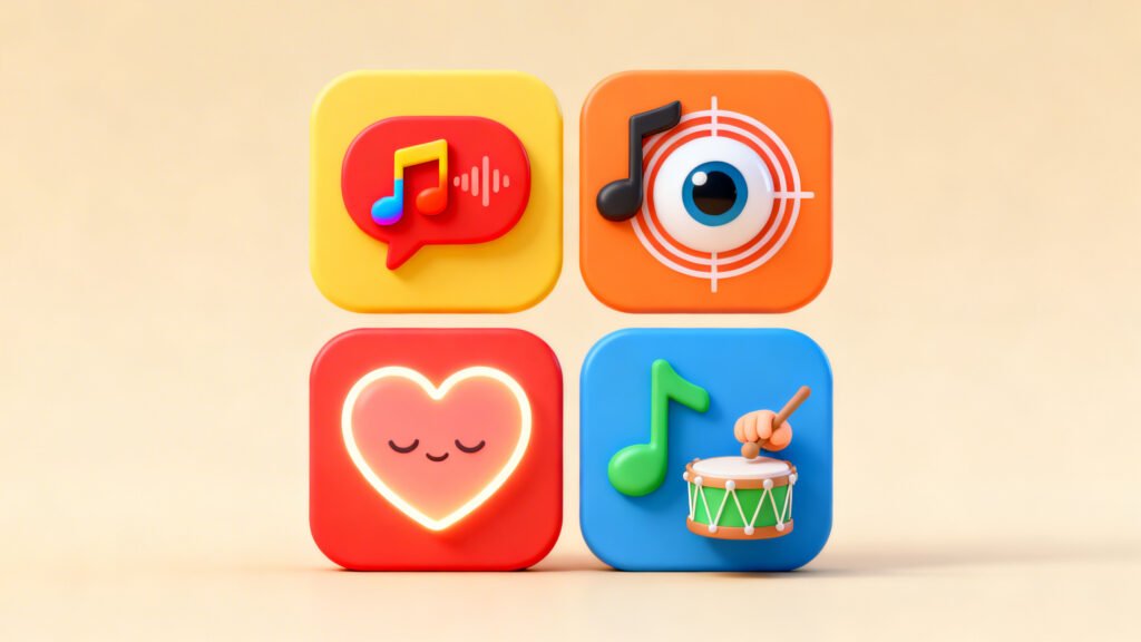 Músicas com repetições, variações leves e estrutura clara ajudam o cérebro a praticar foco. A criança aprende a acompanhar um começo, meio e fim – seja de uma música, seja de uma atividade.