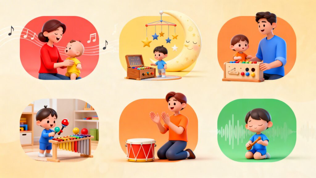Em 2026, estudos com imagens cerebrais mostram que a música envolve regiões ligadas à audição, movimento, emoção, memória e linguagem. Ou seja, quando um bebê interage com música, vários “circuitos” são acionados ao mesmo tempo – o que é ótimo para o desenvolvimento global.
